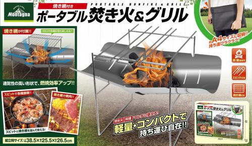 Montagna(モンターナ) 焼き網付ポータブル焚火&グリル レジャー アウトドア キャンプ
